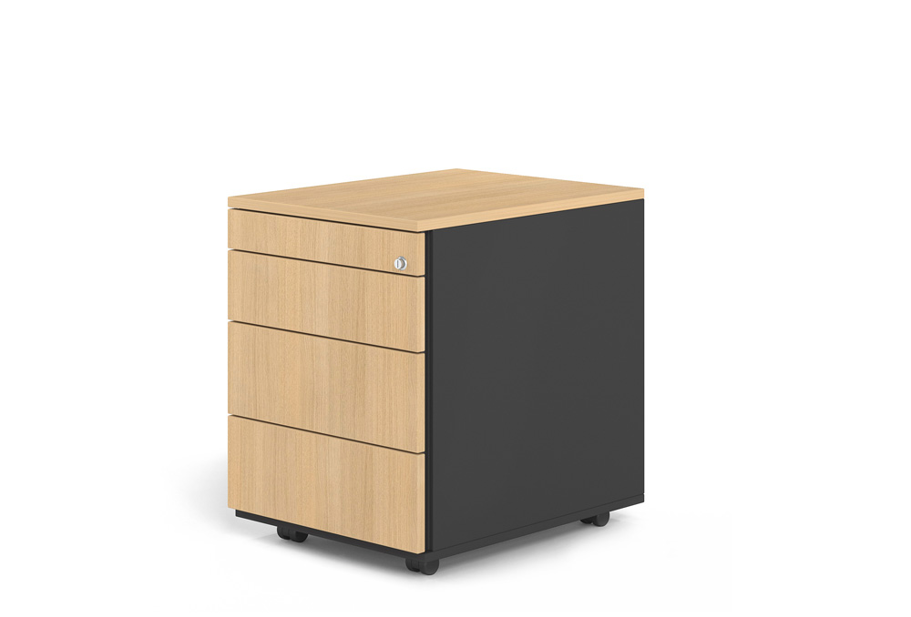 Συρταριέρα Dromeas μελαμίνης με μολυβοθήκη. Κάσωμα σε απόχρωση ανθρακί. Καπάκι και κούτελα σε απόχρωση φυσικό δρυς.