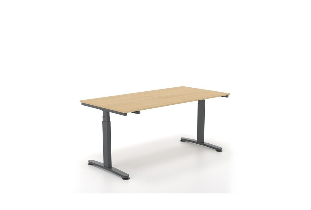 Γραφείο ηλεκτρικό Dromeas σειράς Alma H διάστασης 160Χ80Χ65-125Η με σκελετό σε απόχρωση μαύρο και επιφάνεια σε απόχρωση φυσικό δρυς