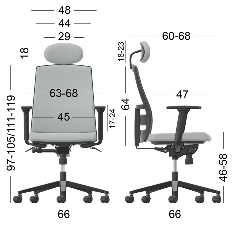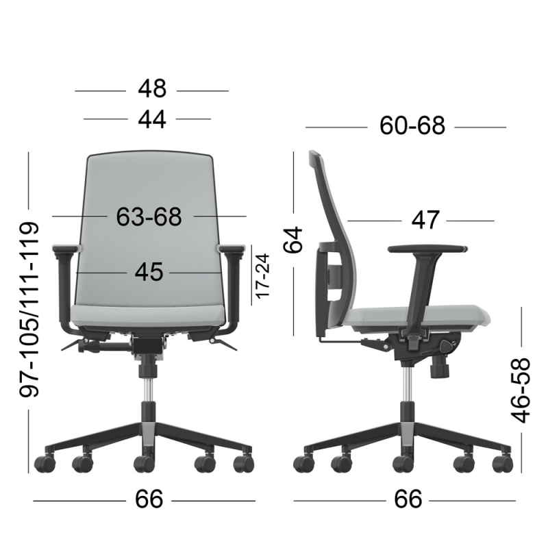Κάθισμα Εργασίας Dromeas Action (0,66×0,66×0,97-1,19) Δερματίνη Μαύρη Πεντάνευρο Βαμμένο Ανθρακί