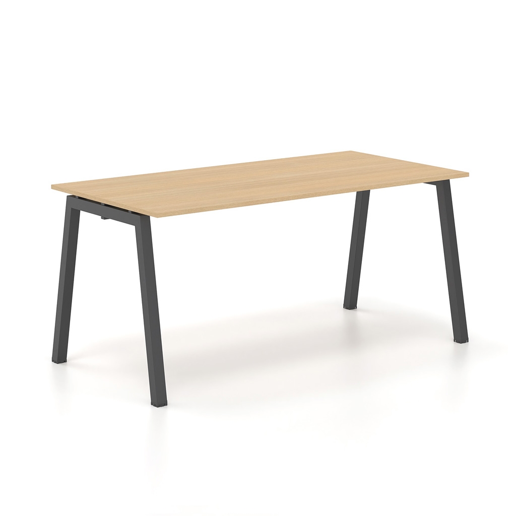 Η επιφάνεια εργασίας τοποθετείται οπτικά «αιωρούμενη» πάνω στο μεταλλικό πλαίσιο στήριξης. Έτσι, το γραφείο αποκτά ελαφρότητα και μοντέρνα εικόνα. Η έκδοση NEO A διαφοροποιείται χάρη στον σχεδιασμό τύπου Π των κάθετων στηριγμάτων. Το στοιχείο αυτό προσφέρει σταθερότητα και καθαρή γεωμετρία.